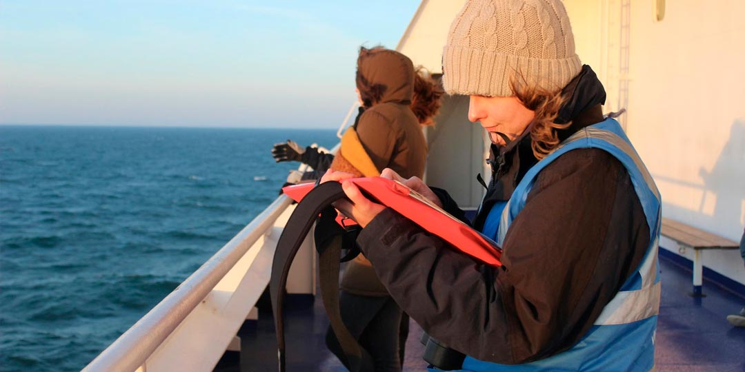 Un observador científico a bordo durante la temporada alta